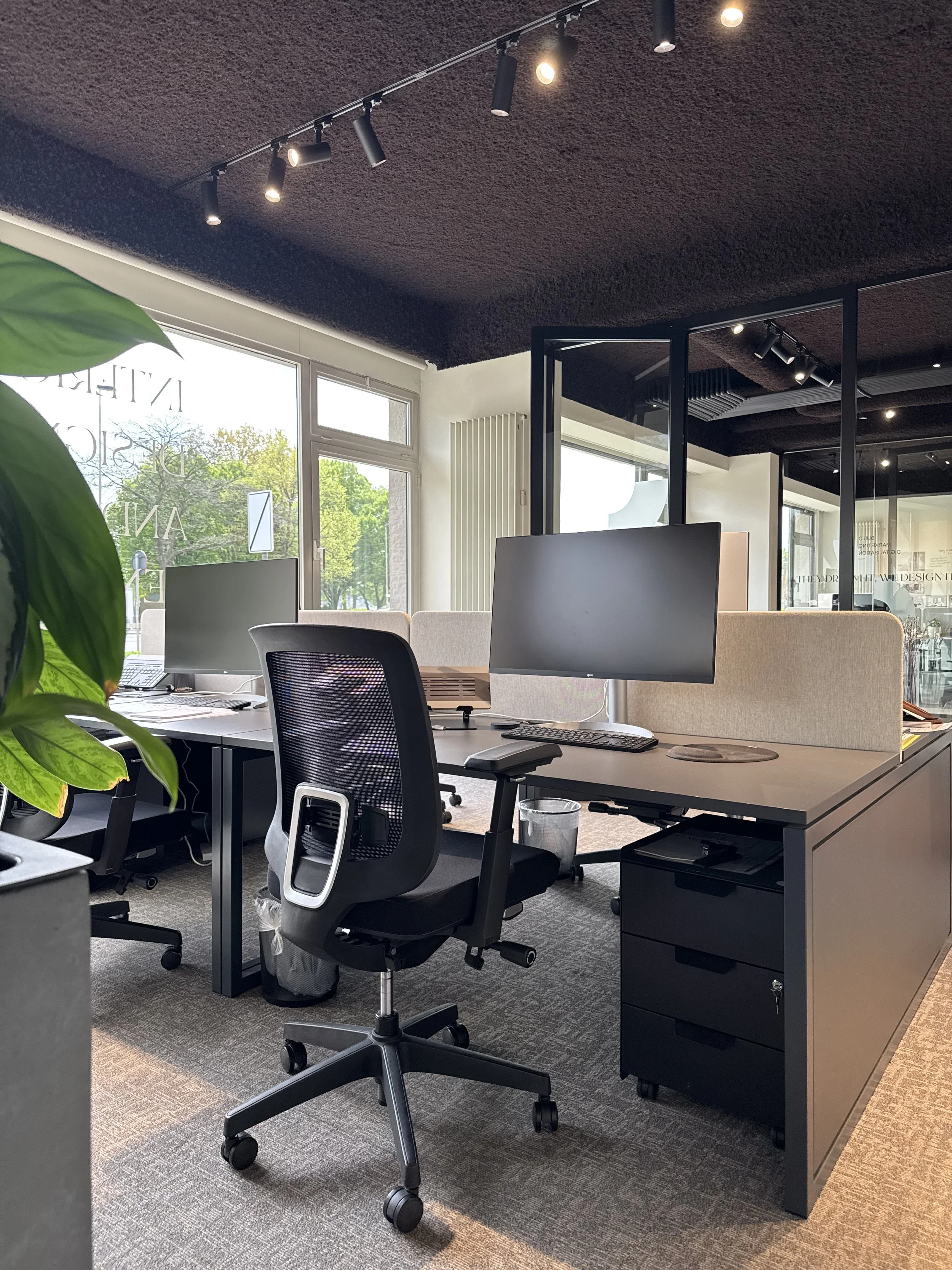 Jouw eigen werkplek met aansluitbaar scherm en ergonomische bureaustoel. Of neem plaats aan een standing desk.